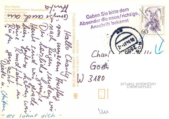 72666015 alte Postkarte ROSTOCK CITY Universitaetsplatz Torsi mittelalterlicher Gewandfiguren Brunnen der Lebensfreude Innenhof Kloster zum Hl Kreuz postalisch gelaufen Erhaltung siehe scans [WerneD78] KatCode: 11110013003000