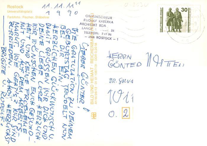 73947376 ROSTOCK CITY Universitaetsplatz postalisch gelaufen Erhaltung siehe scans [WerneD78] alte Postkarte Wern Katcode 11110013003000