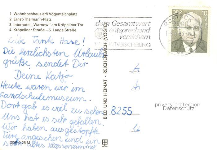 73031668 alte Postkarte ROSTOCK CITY Wohnhochhaus Ernst Thaelmann Platz Interhotel Warnow Kroepeliner Strasse Lange Strasse postalisch gelaufen Erhaltung siehe scans [WerneD78] KatCode: 11110013003000