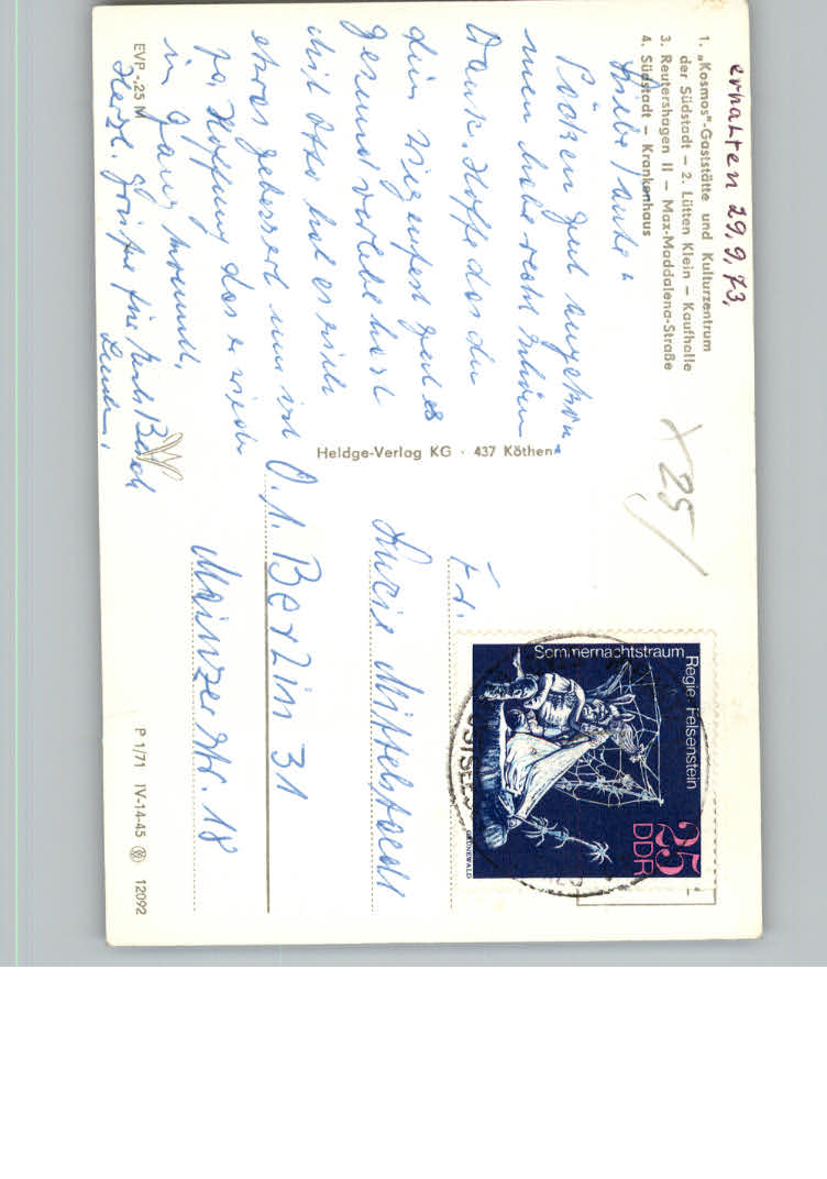 31165554 Rostock Gaststaette Kosmos postalisch nicht gelaufen KatCode: 11110013003000