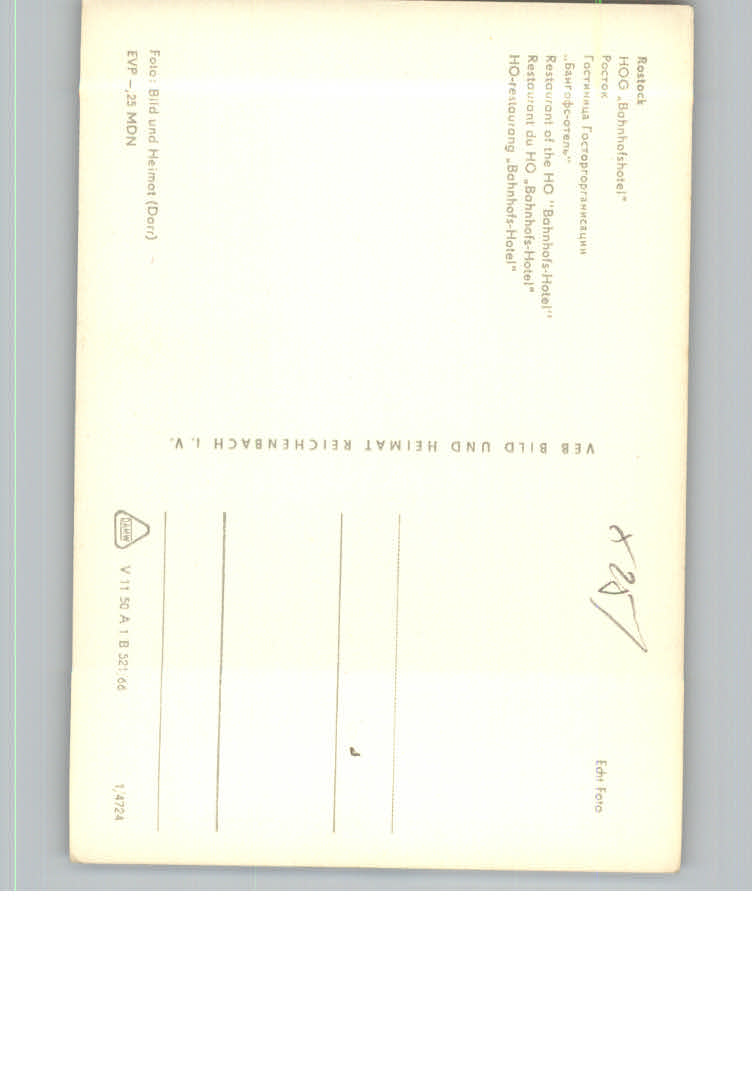31165589 Rostock Hotel Bahnhof postalisch nicht gelaufen KatCode: 11110013003000