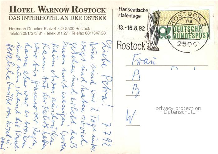 73614286 alte Postkarte Rostock Hotel Warnow Bootshafen Innenstadt postalisch gelaufen Erhaltung siehe scans [WerneD78] KatCode: 11110013003000