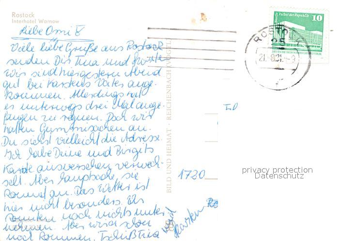 73151747 alte Postkarte Rostock Interhotel Warnow postalisch gelaufen Erhaltung siehe scans [FriedD77] KatCode: 11110013003000