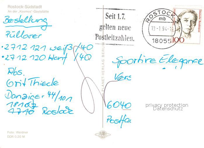 73228667 alte Postkarte Rostock Kosmos Gaststaette postalisch gelaufen Erhaltung siehe scans [NatalD47] KatCode: 11110013003000