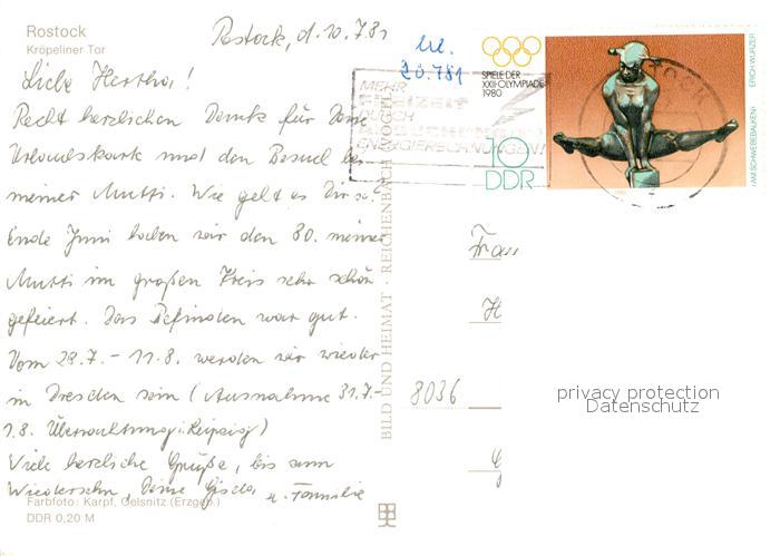 73155361 alte Postkarte Rostock Kroepeliner Tor postalisch gelaufen Erhaltung siehe scans [WerneD78] KatCode: 11110013003000