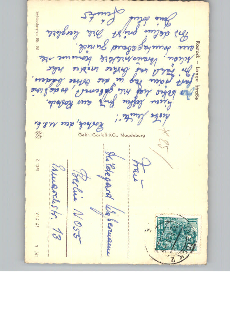 31166135 Rostock Lange Strasse postalisch nicht gelaufen KatCode: 11110013003000