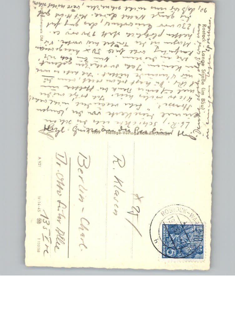31165641 Rostock Lange Strasse postalisch nicht gelaufen KatCode: 11110013003000