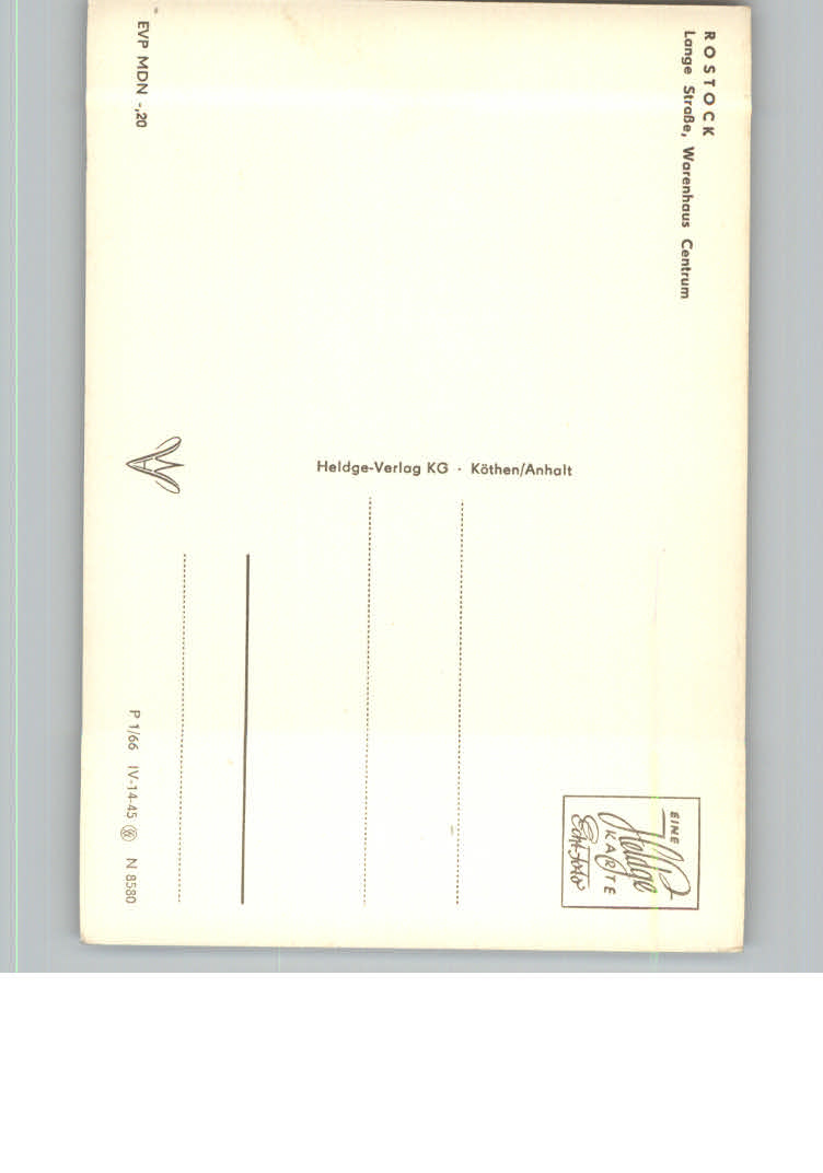 31165588 Rostock Lange Strasse postalisch nicht gelaufen KatCode: 11110013003000