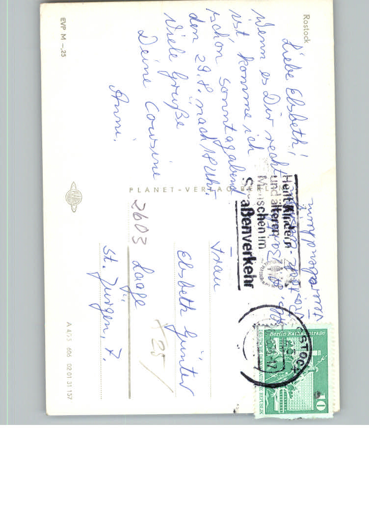 31165545 Rostock Langestrasse postalisch nicht gelaufen KatCode: 11110013003000