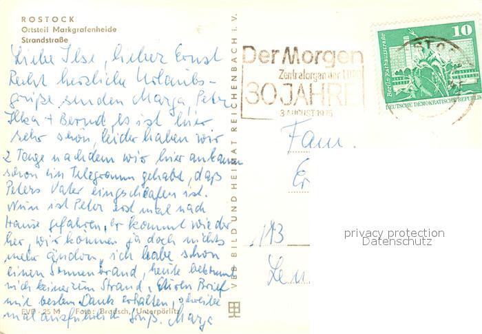 33045856 alte Postkarte Rostock Markgrafenheide Strandstrasse postalisch gelaufen Erhaltung siehe scans [NatalD47] KatCode: 11110013003000