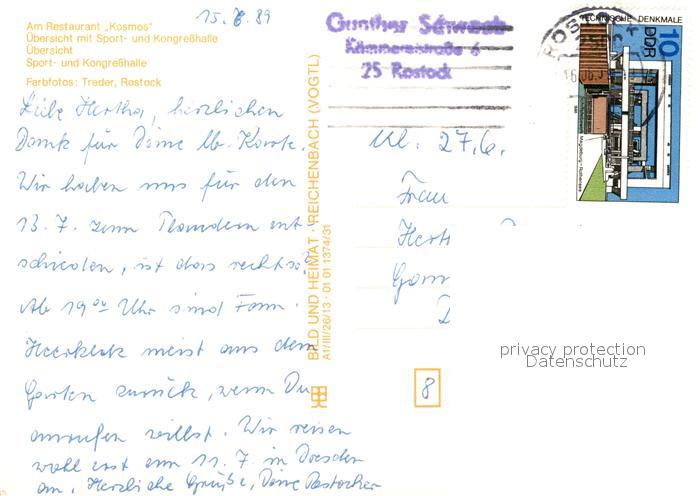 73155350 alte Postkarte Rostock Restaurant Kosmos Sport und Kongresshalle Panorama postalisch gelaufen Erhaltung siehe scans [WerneD78] KatCode: 11110013003000