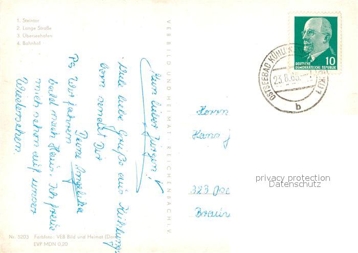 73166813 alte Postkarte Rostock Steintor Lange Strasse Oberseehafen Bahnhof postalisch gelaufen Erhaltung siehe scans [KathaD81] KatCode: 11110013003000