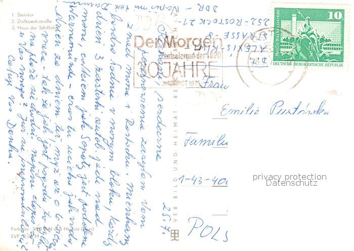 73129755 alte Postkarte Rostock Steintor Ziolkowskistrasse Haus der Schiffahrt postalisch gelaufen Erhaltung siehe scans [NatalD47] KatCode: 11110013003000