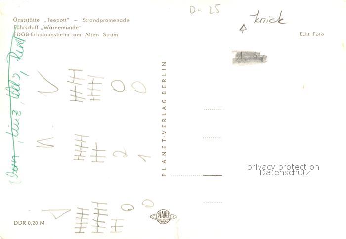 72917403 Rostock-Warnemuende Gaststaette Teepott Strandpromenade Erholungsheim am Alten Strom postalisch nicht gelaufen Erhaltung siehe scans [PaolaD17] KatCode: 11110013003000