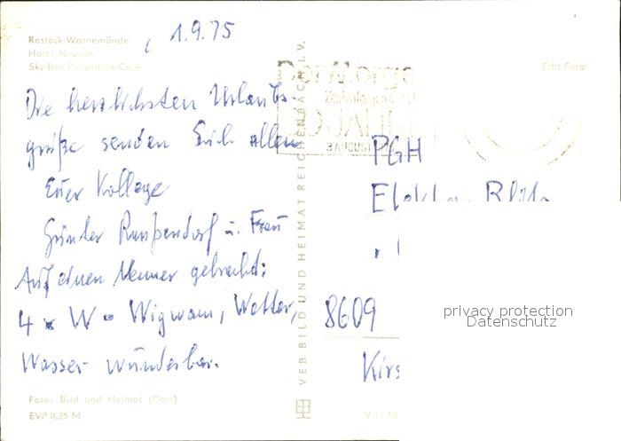 72333737 alte Postkarte Rostock-Warnemuende Hotel Neptun postalisch gelaufen Erhaltung siehe scans KatCode: 11110013003000