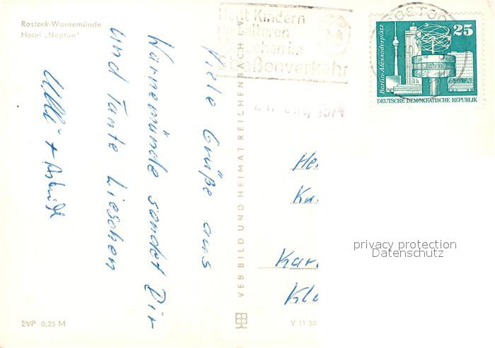73139297 alte Postkarte Rostock-Warnemuende Hotel Neptun postalisch gelaufen Erhaltung siehe scans [NatalD47] KatCode: 11110013003000