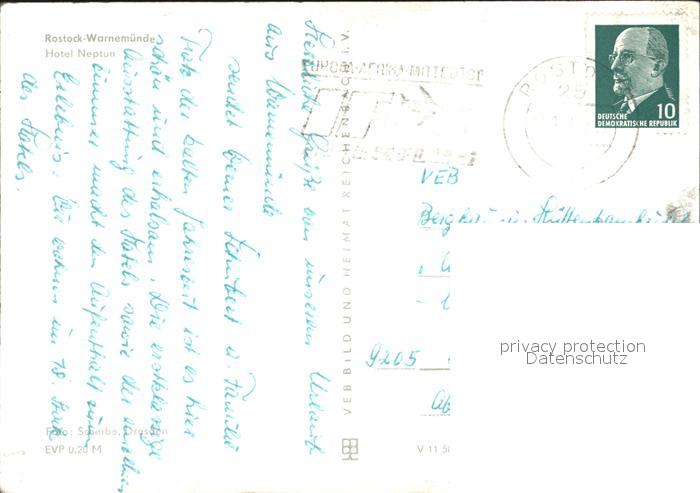 72032420 alte Postkarte Rostock-Warnemuende Hotel Neptun postalisch gelaufen Erhaltung siehe scans KatCode: 11110013003000