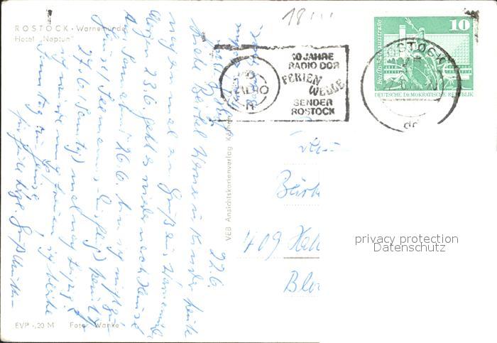 72027237 alte Postkarte Rostock-Warnemuende Hotel Neptun postalisch gelaufen Erhaltung siehe scans KatCode: 11110013003000