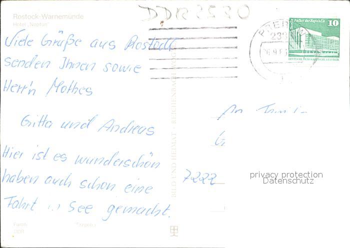 71934364 alte Postkarte Rostock-Warnemuende Hotel Neptun postalisch gelaufen KatCode: 11110013003000