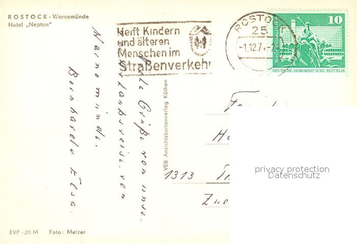 73066543 alte Postkarte Rostock-Warnemuende Hotel Neptun postalisch gelaufen Erhaltung siehe scans [WerneD78] KatCode: 11110013003000