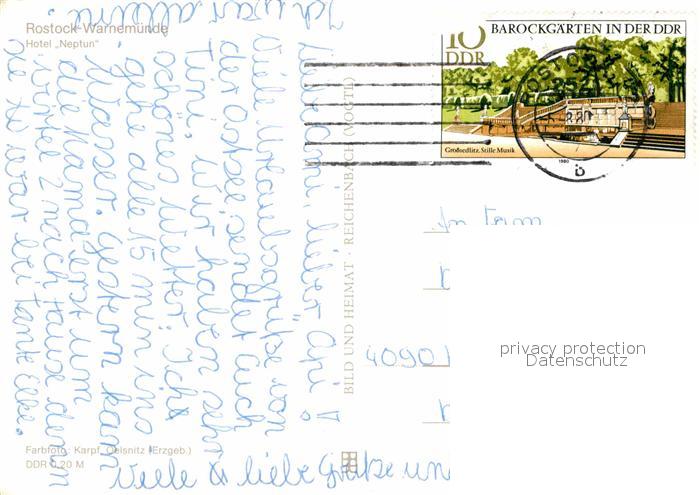 72849585 alte Postkarte Rostock-Warnemuende Hotel Neptun postalisch gelaufen Erhaltung siehe scans [KathaD81] KatCode: 11110013003000