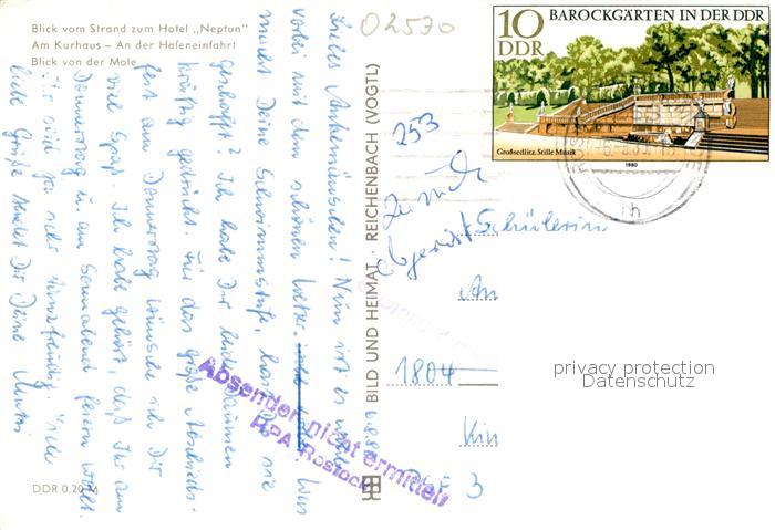 72941241 alte Postkarte Rostock-Warnemuende Hotel Neptun Kurhaus Hafeneinfahrt postalisch gelaufen Erhaltung siehe scans [NatalD47] KatCode: 11110013003000