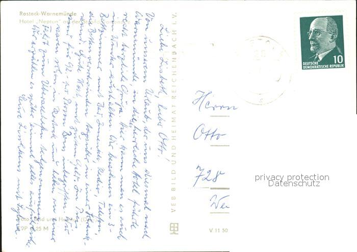 72477302 alte Postkarte Rostock-Warnemuende Hotel Neptun Promenade postalisch gelaufen Erhaltung siehe scans KatCode: 11110013003000