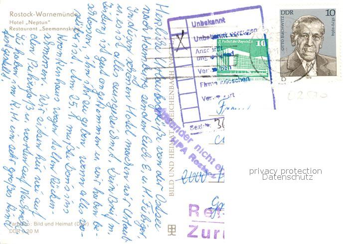 73059145 alte Postkarte Rostock-Warnemuende Hotel Neptun Restaurant Seemannskrieg postalisch gelaufen Erhaltung siehe scans [WerneD78] KatCode: 11110013003000