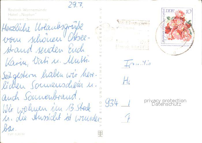 72069517 alte Postkarte Rostock-Warnemuende Hotel Neptun Restaurant Seemannskrug postalisch gelaufen Erhaltung siehe scans KatCode: 11110013003000