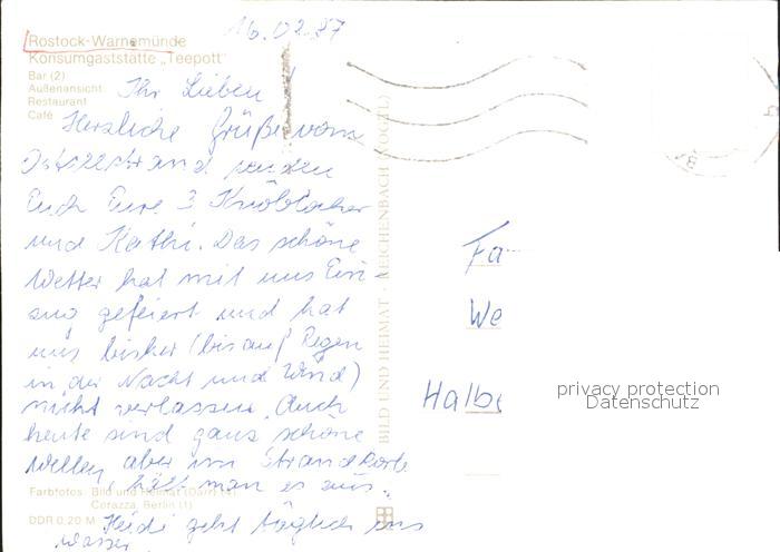 72326646 alte Postkarte Rostock-Warnemuende Konsum Gaststaette Teepott Bar Restaurant Cafe postalisch gelaufen Erhaltung siehe scans KatCode: 11110013003000