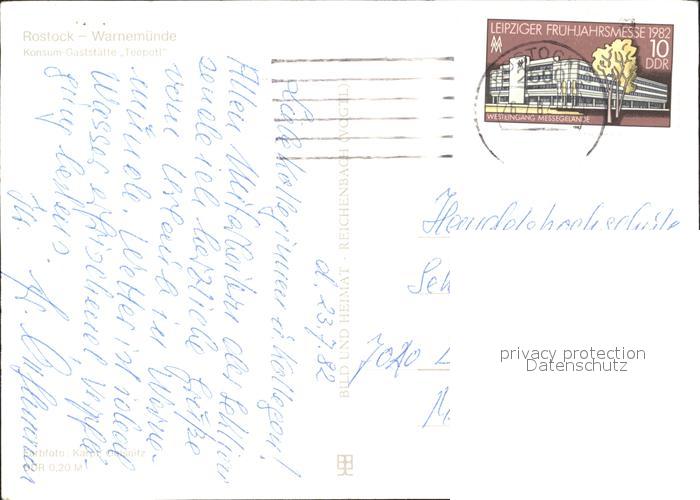 72309030 alte Postkarte Rostock-Warnemuende Konsum Gaststaette Teepott Leuchtturm postalisch gelaufen Erhaltung siehe scans KatCode: 11110013003000
