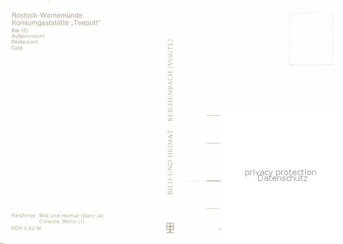 72649384 Rostock-Warnemuende Konsumgaststaette Teepott Bar Restaurant Cafe postalisch nicht gelaufen Erhaltung siehe scans [WerneD78] KatCode: 11110013003000