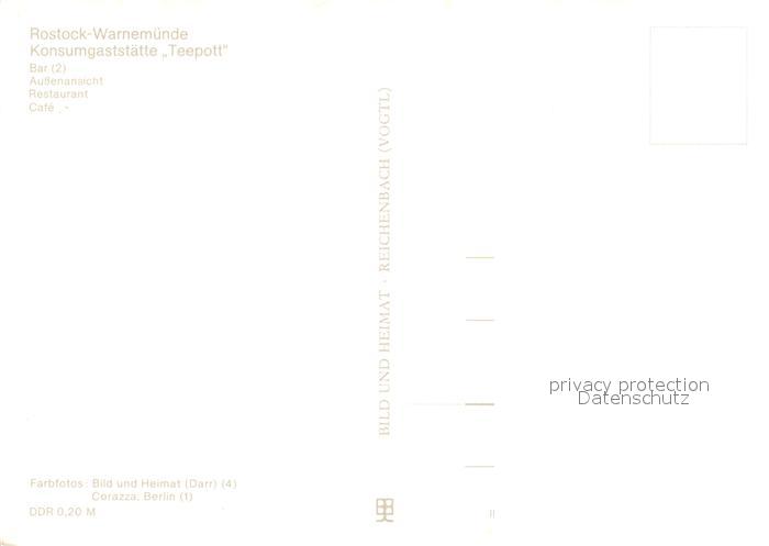 73166844 Rostock-Warnemuende Konsumgaststaette Teepott postalisch nicht gelaufen Erhaltung siehe scans [KathaD81] KatCode: 11110013003000