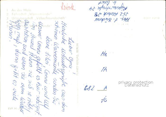 72335696 alte Postkarte Rostock-Warnemuende Mole Faehrschiff Warnemuende Leuchtturm Molenkopf Alter Strom postalisch gelaufen Erhaltung siehe scans KatCode: 11110013003000