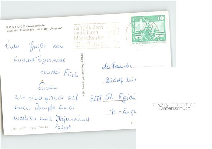 72383770 alte Postkarte Rostock-Warnemuende Promenade Hotel Neptun postalisch gelaufen Erhaltung siehe scans KatCode: 11110013003000