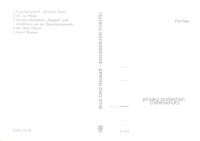 72636400 Rostock-Warnemuende Segelschulschiff Wilhelm Pieck Mole Hotel Neptun postalisch nicht gelaufen Erhaltung siehe scans [AndreD76] KatCode: 11110013003000