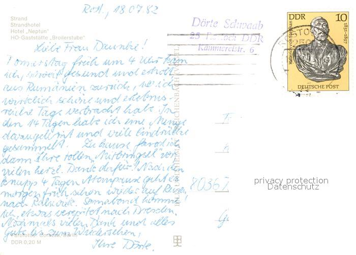 73155348 alte Postkarte Rostock-Warnemuende Strand Strandhotel Hotel Neptun HOG Broilertube postalisch gelaufen Erhaltung siehe scans [WerneD78] KatCode: 11110013003000