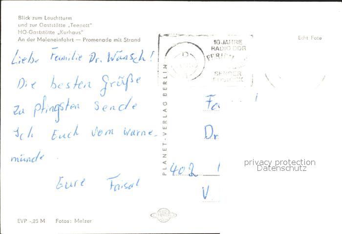 72335690 alte Postkarte Rostock-Warnemuende Strandpartie Kurhaus Promenade Leuchtturm Ozeandampfer postalisch gelaufen Erhaltung siehe scans KatCode: 11110013003000