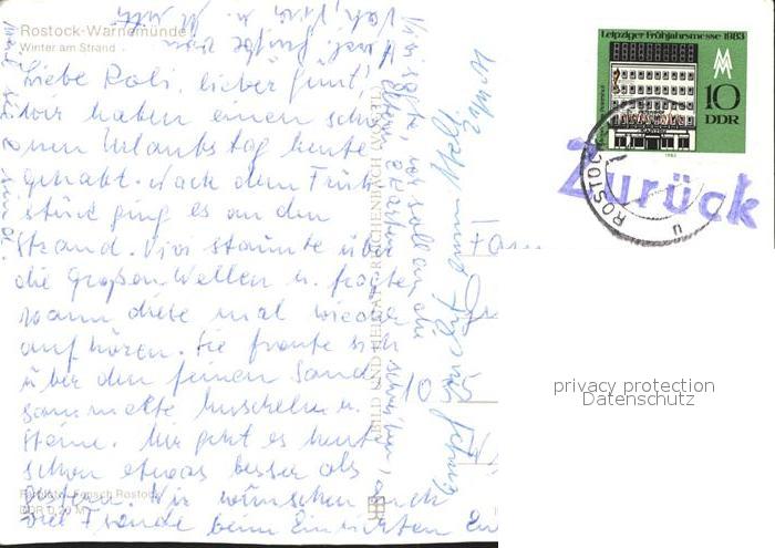 72213907 alte Postkarte Rostock-Warnemuende Winter am Strand Schwaene Schiffe postalisch gelaufen Erhaltung siehe scans KatCode: 11110013003000