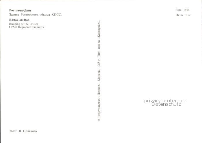 Rostov-On-Don Building CPSU Regional Committee postalisch nicht gelaufen Erhaltung siehe scans