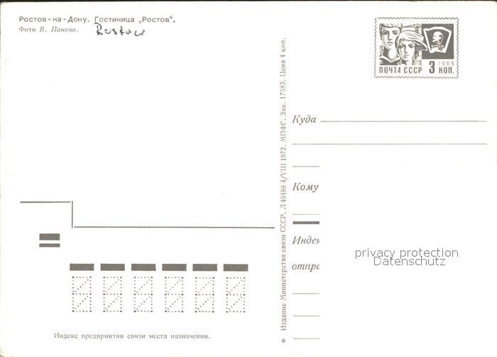 Rostov-On-Don Hotel Rostov postalisch nicht gelaufen Ganzsache (eingedruckte Briefmarke) Erhaltung siehe scans