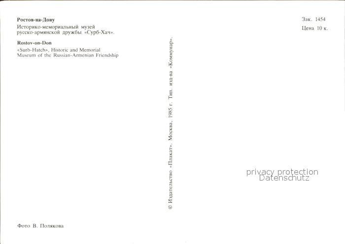 Rostov-On-Don Surb Hatch Historic and Memorial Museum postalisch nicht gelaufen Erhaltung siehe scans