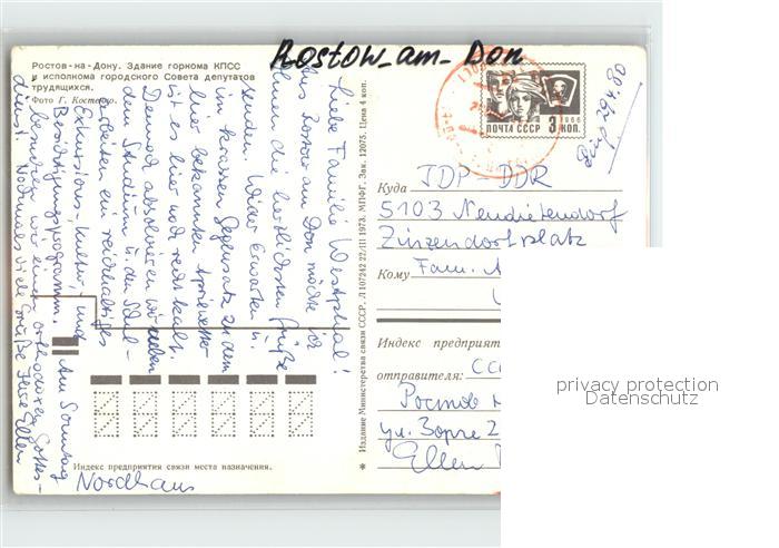 old postcard Rostow am Don Zentrale der KPdsU postalisch gelaufen Erhaltung siehe scans