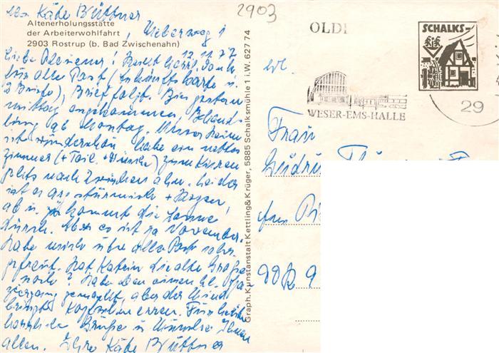 73914349 alte Postkarte Rostrup Altenerholungsstaette der AWO postalisch gelaufen Erhaltung siehe scans [FriedD77] KatCode: 11110003451002