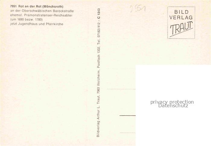 74050793 Rot an der Rot Biberach BW Praemonstratenser Reichsabtei postalisch nicht gelaufen Erhaltung siehe scans [WerneD78] Wern Katcode 11110008426100