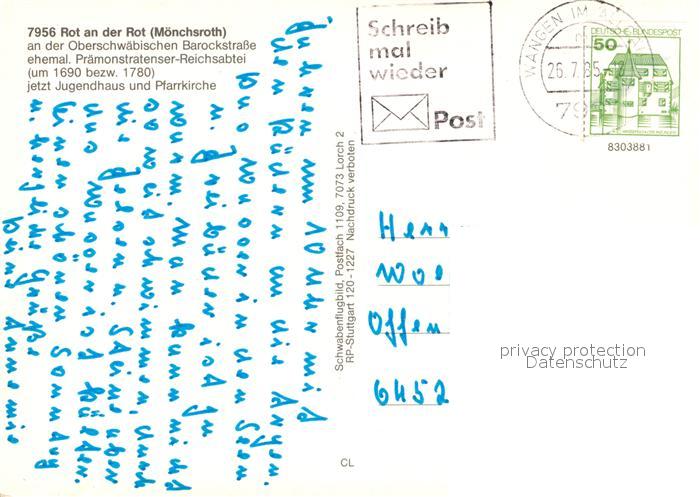 73056818 alte Postkarte Rot Rot Praemonstratenser Reichsabtei Fliegeraufnahme postalisch gelaufen Erhaltung siehe scans [WerneD78] KatCode: 11110008426100