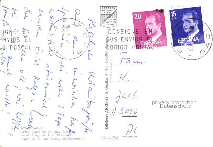 old postcard Rota Playa de la Luz Hotel postalisch gelaufen Erhaltung siehe scans