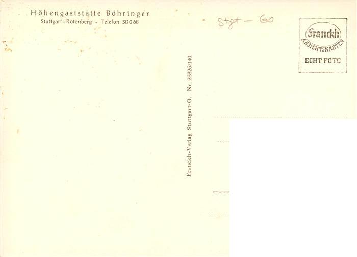 73887484 Rotenberg Stuttgart Hoehengaststaette Boehringer Restaurant postalisch nicht gelaufen Erhaltung siehe scans [FriedD77] KatCode: 11110008111000
