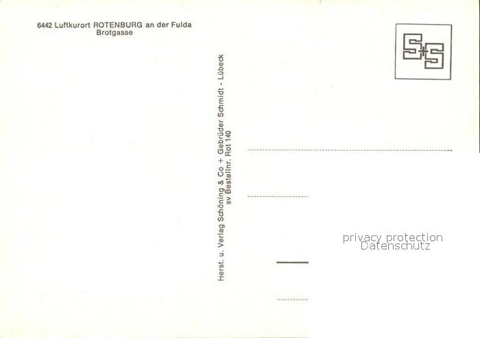 72051562 Rotenburg Fulda Brotgasse postalisch nicht gelaufen Erhaltung siehe scans KatCode: 11110006632018