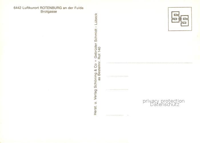 72991165 Rotenburg Fulda Brotgasse Fachwerkhaeuser Altstadt Kirchturm postalisch nicht gelaufen Erhaltung siehe scans [FriedD77] KatCode: 11110006632018